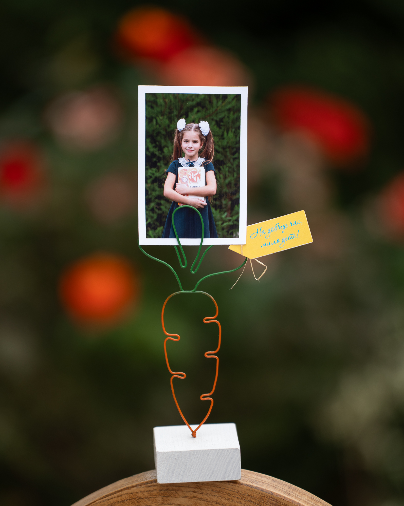 Между трите листенца в горната част може да поставите снимка, картичка или послание и да превърнете морковчето в лично кътче за спомен.
